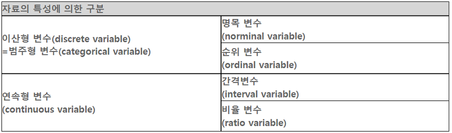 # 양적변수, 질적변수, 이산형변수, 연속형 변수에 대해
