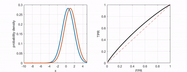 - AUC는 ROC curve의 아래 면적입니다.