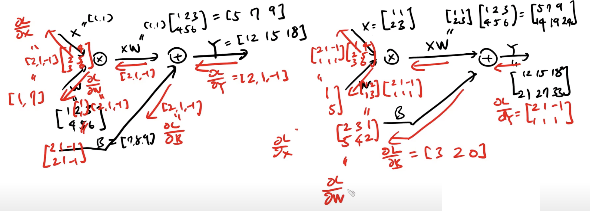 위와 같은 과정이지만, 데이터를 묶어서 배치처리한다는 것이 다른점입니다. 이러한 과정을 실제 손으로 계산하여 보자면