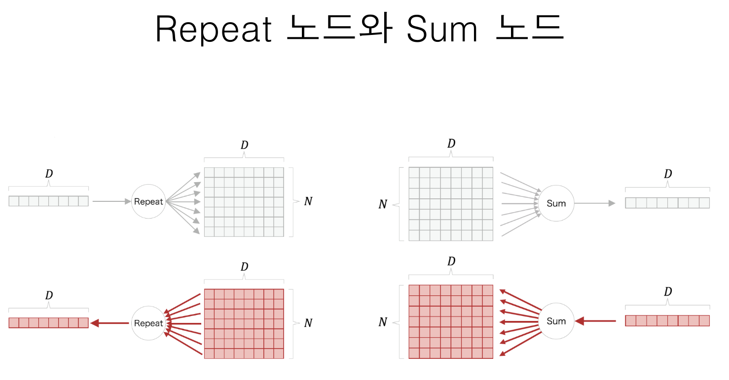 Repeat와 Sum의 노드 역전파 과정에서는 상호 관계입니다.