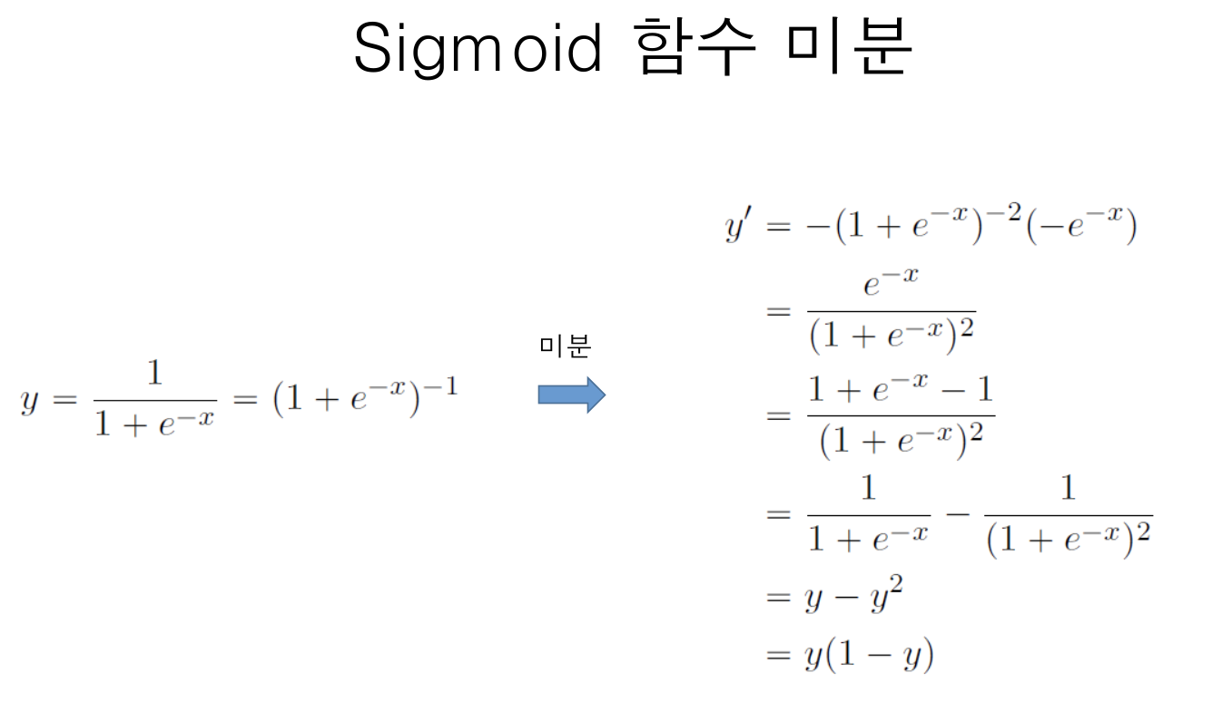 시그모이드는 미분을 하면 결국 사칙연산으로 역전파를 구할 수 있게됩니다. 순전파로 구한 y로, y(1-y)를 하면 되는 것입니다.