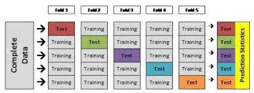 교차 검증 ( Cross-validation ) K-Fold 교차검증 교차검증은 데이터셋을 임의의 K개로 나누어, K개 중 1개는 테스트 셋으로 하고, 나머지 K-1개는 트레이닝셋으로 하여 학습하는 것을 말합니다. 이 때 테스트 셋을 K번 바꾸어 트레이닝과 테스트 셋을 교차하여 학습하는 방식입니다. 그래서 5개의 모델의 성능의 평균을 최종 성능으로 나타냅니다. Stratified K-FOLD 교차검증 그러면, 폴드 자체를 50대50으로 맞추는건지, 전체 데이터의 클래스 비율을 맞추는건지 예를 들어 5-Fold의 경우 위의 그림과 같이 학습이 진행되는 것입니다. 교차검증 with Python k = 5 # k-Fold ( K = 5 ) scores = cross_val_score(model, X_train..